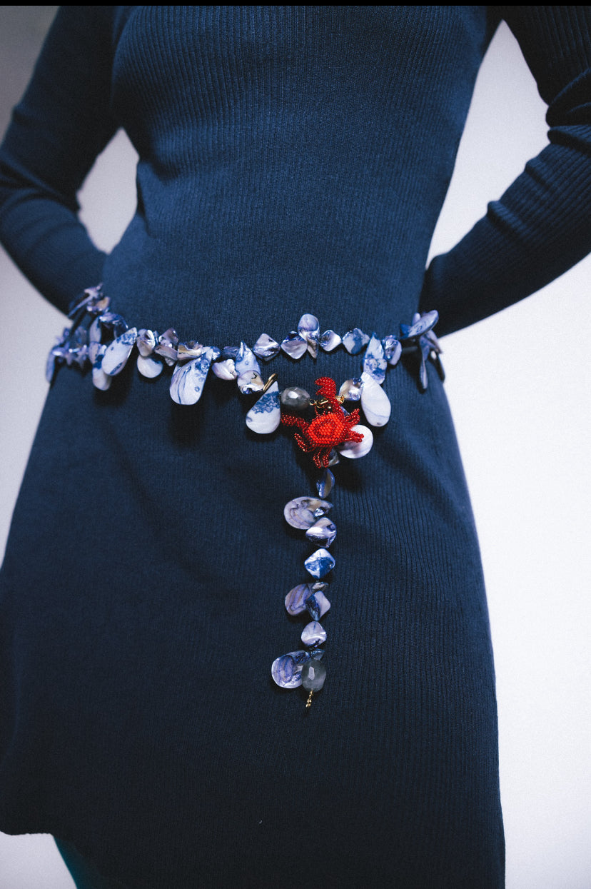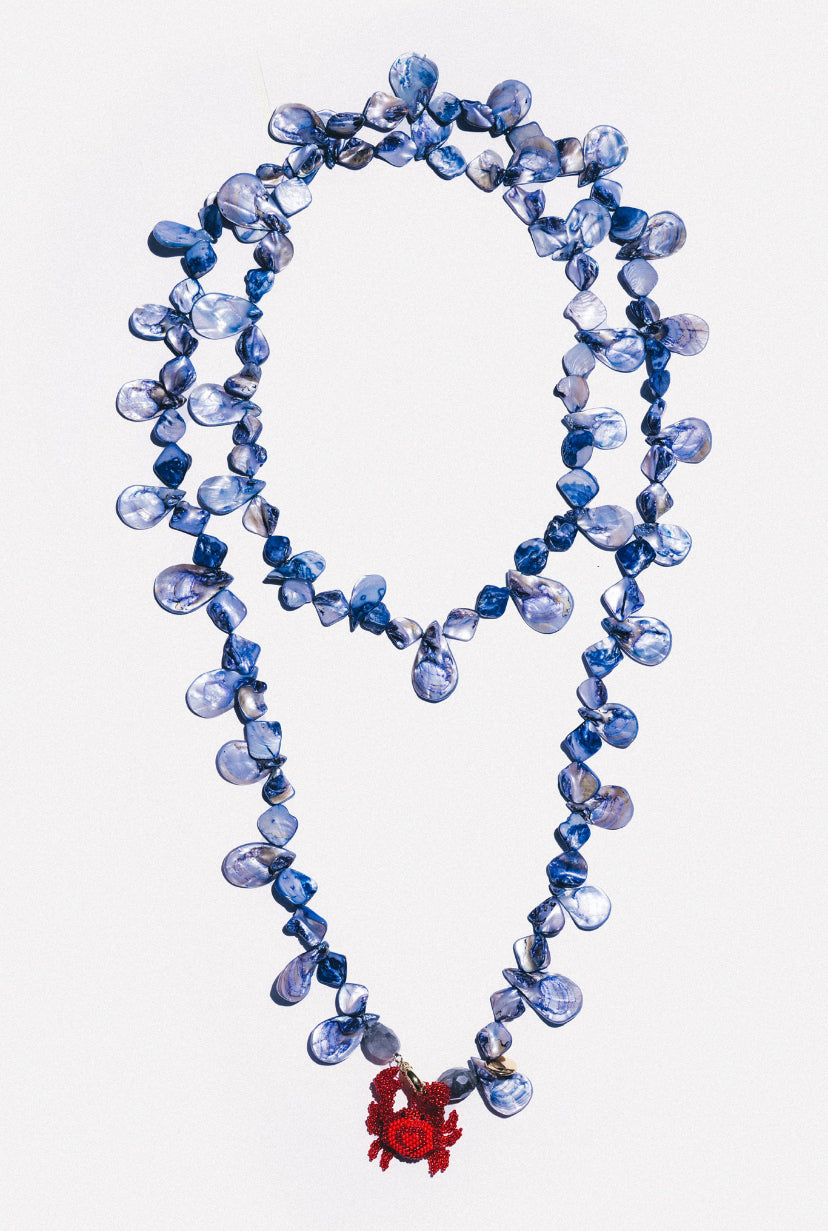 O Colar Caranguejo Lelo, faz parte da coleção Akana (Constelação Selvagem). Conta a história de uma Alice reinventada no País das Maravilhas, uma personagem que torna-se uma metáfora para os nossos sonhos e a ambição inabalável de sermos grandiosos. Em vez de cair no País das Maravilhas, esta Alice embarca numa viagem onírica e aterra na vibrante Amazónia. As peças em madrepérola natural são todas exclusivas e recebem um processo especial de tingimento na nossa oficina.