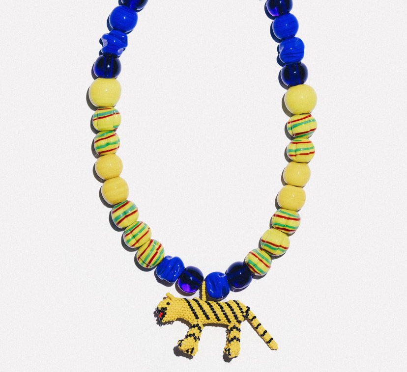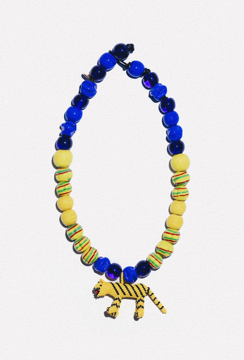 As esferas listradas de Murano e o tigre meticulosamente esculpido à mão, com o seu volume e formato distintos, são peças divertidas criadas através do nosso projeto social com artesãos na Colômbia. Cada uma representa um fragmento desta aventura mágica, incorporando a emoção, o desejo e a beleza que se encontram na natureza.