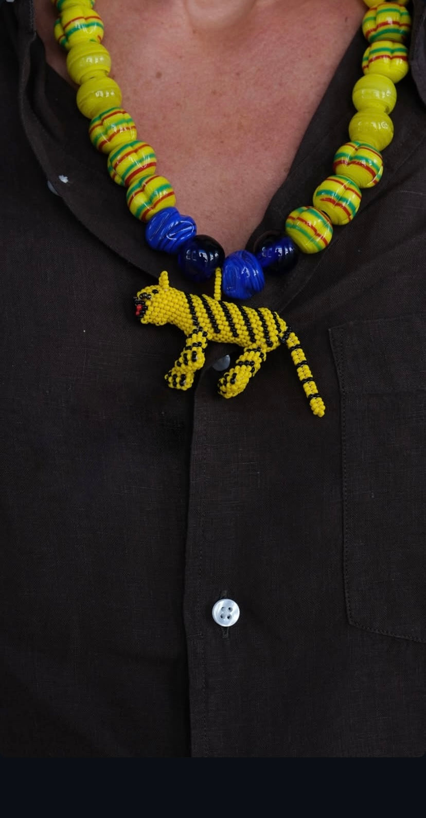 Esferas de vidro de Murano + pele grega + tigre de contas em acrílico