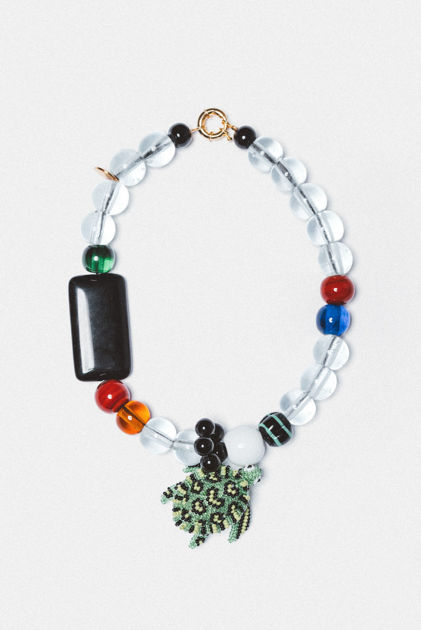 A harmonia lúdica entre as pedras naturais e as esferas de Murano, formando um conjunto geométrico singular, juntamente com a delicadeza da tartaruga esculpida em 3D, constituem peças exclusivas, cuidadosamente elaboradas à mão na nossa oficina. Os detalhes em metal banhado a ouro, como os fechos e as etiquetas, fazem parte da nossa linha de joias premium.