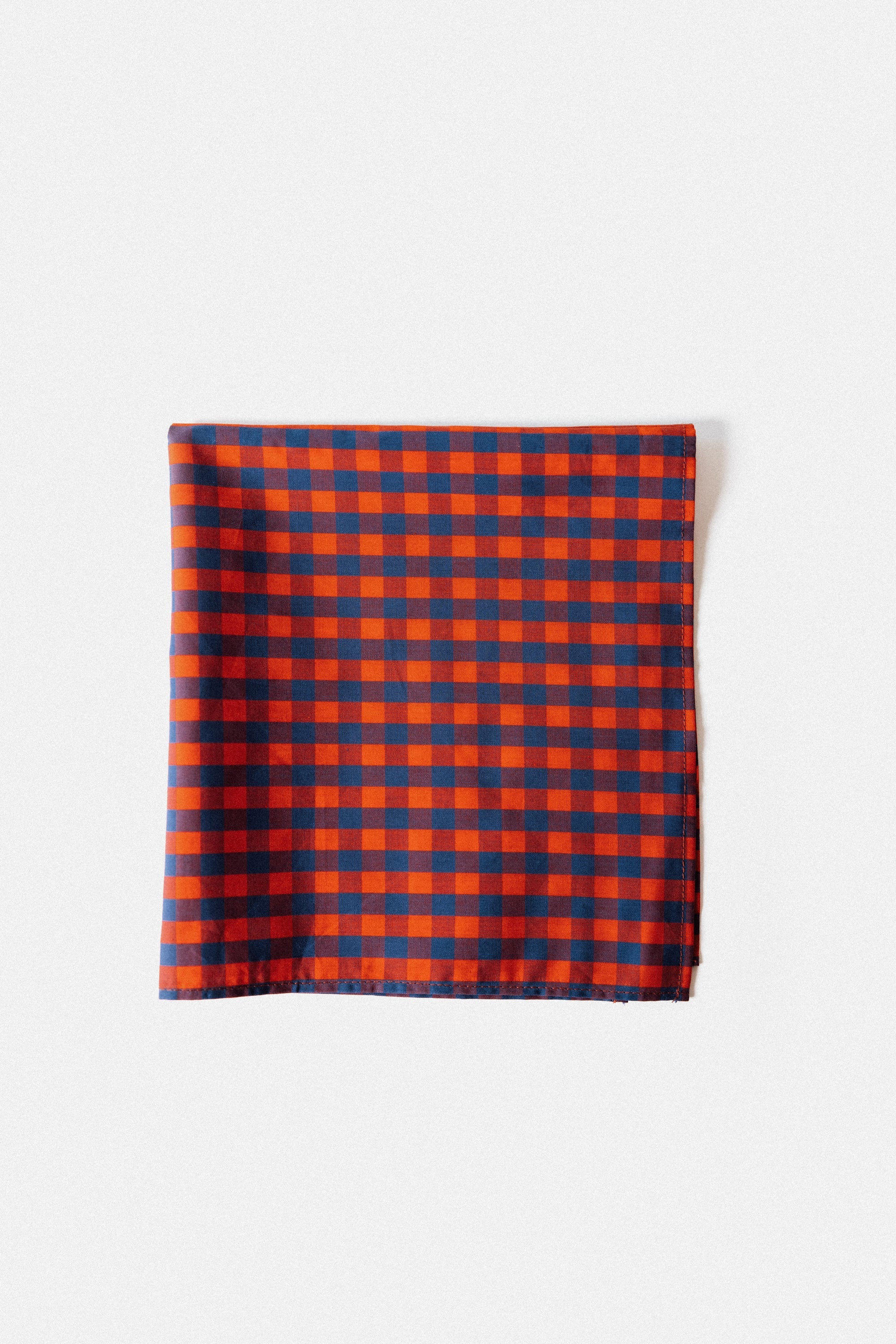 Guardanapo quadrado em xadrez Vichy vermelho e azul. Feito à mão com todo o nosso amor, em Portugal.