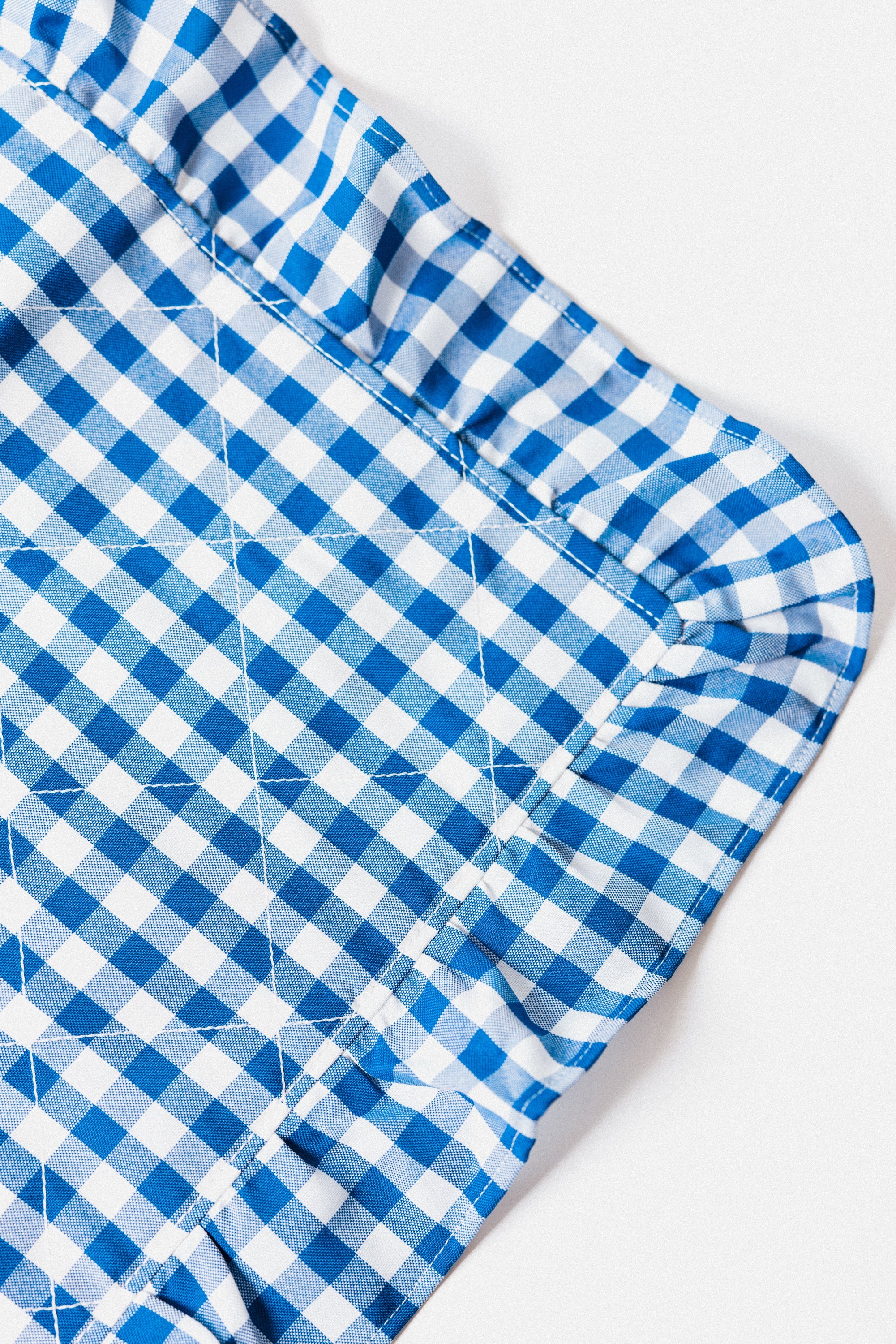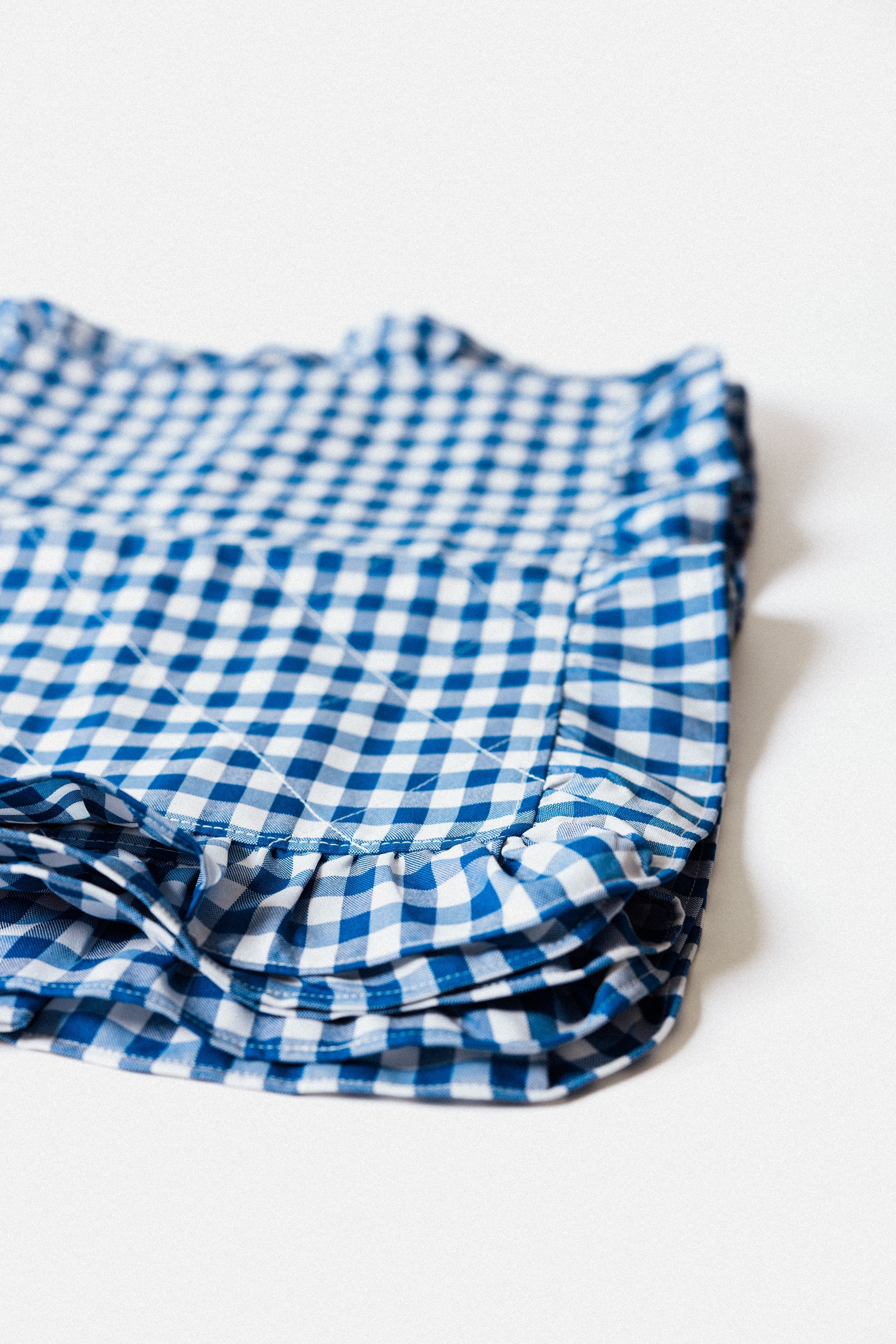 Individual de mesa em algodão com xadrez Vichy azul e branco, com folho à volta. Feito à mão com todo o nosso amor, em Portugal.