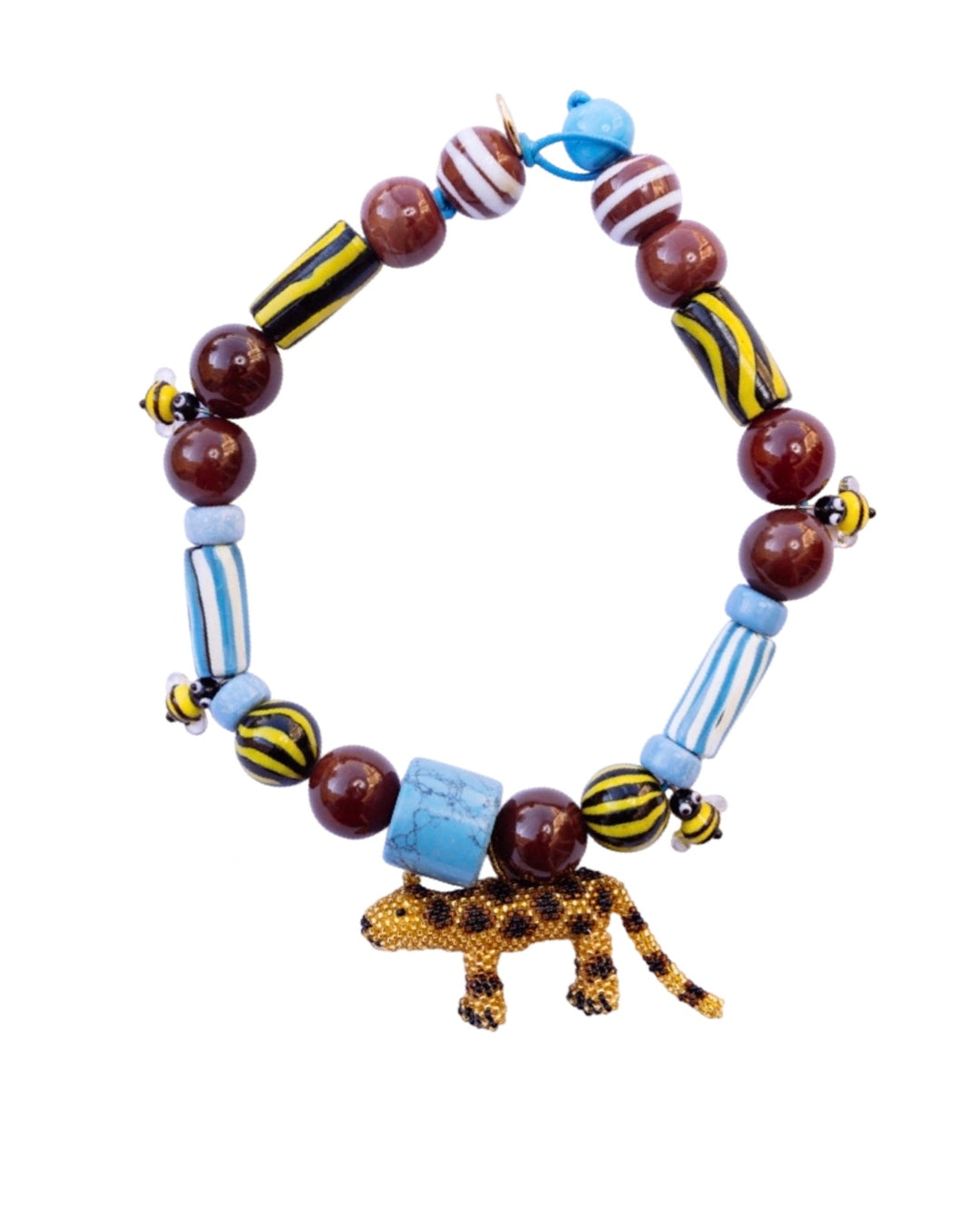 Vidro de Murano às Riscas + Esferas de Ágata Natural + Abelhas de Vidro de Murano + Esferas Geométricas de Pedra-sabão + Leopardo de Contas de Acrílico + Couro Grego