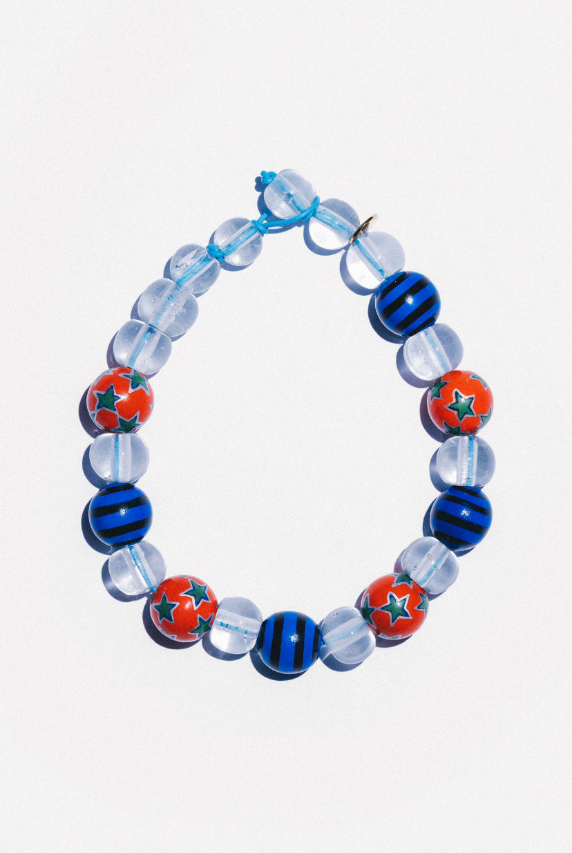 Esferas de vidro de Murano + esferas de madeira pintadas à mão + fecho de aço inoxidável banhado a ouro 18k