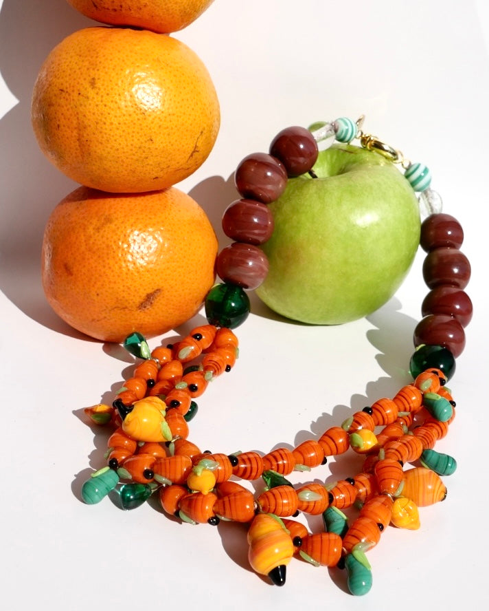 Cerâmica + vidro de Murano + esferas de cristal + fecho em aço inoxidável com banho de ouro 18k