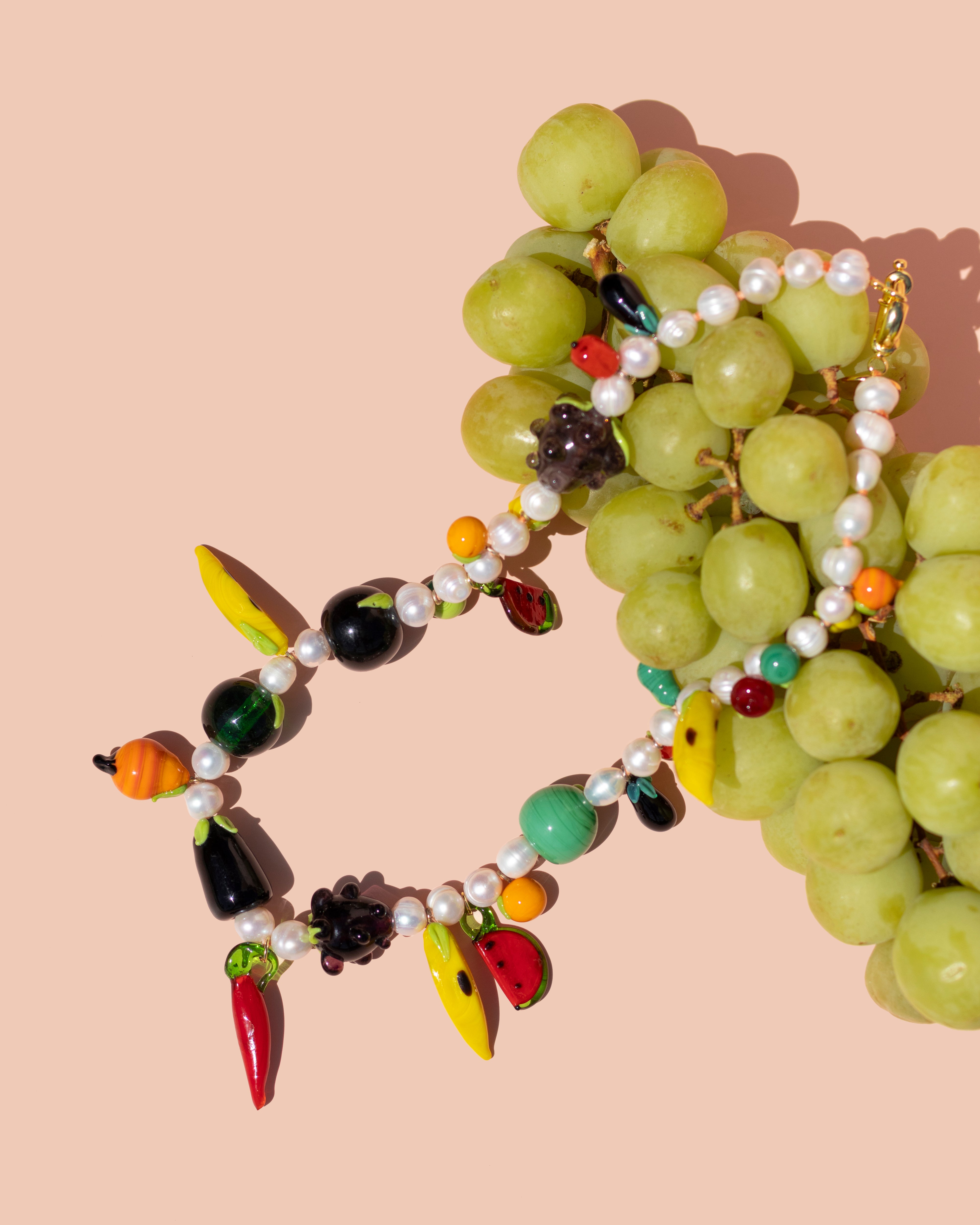 Natural Pearls+Murano glass Fruits+Stainless Steel Clasp + 18k Gold Plating