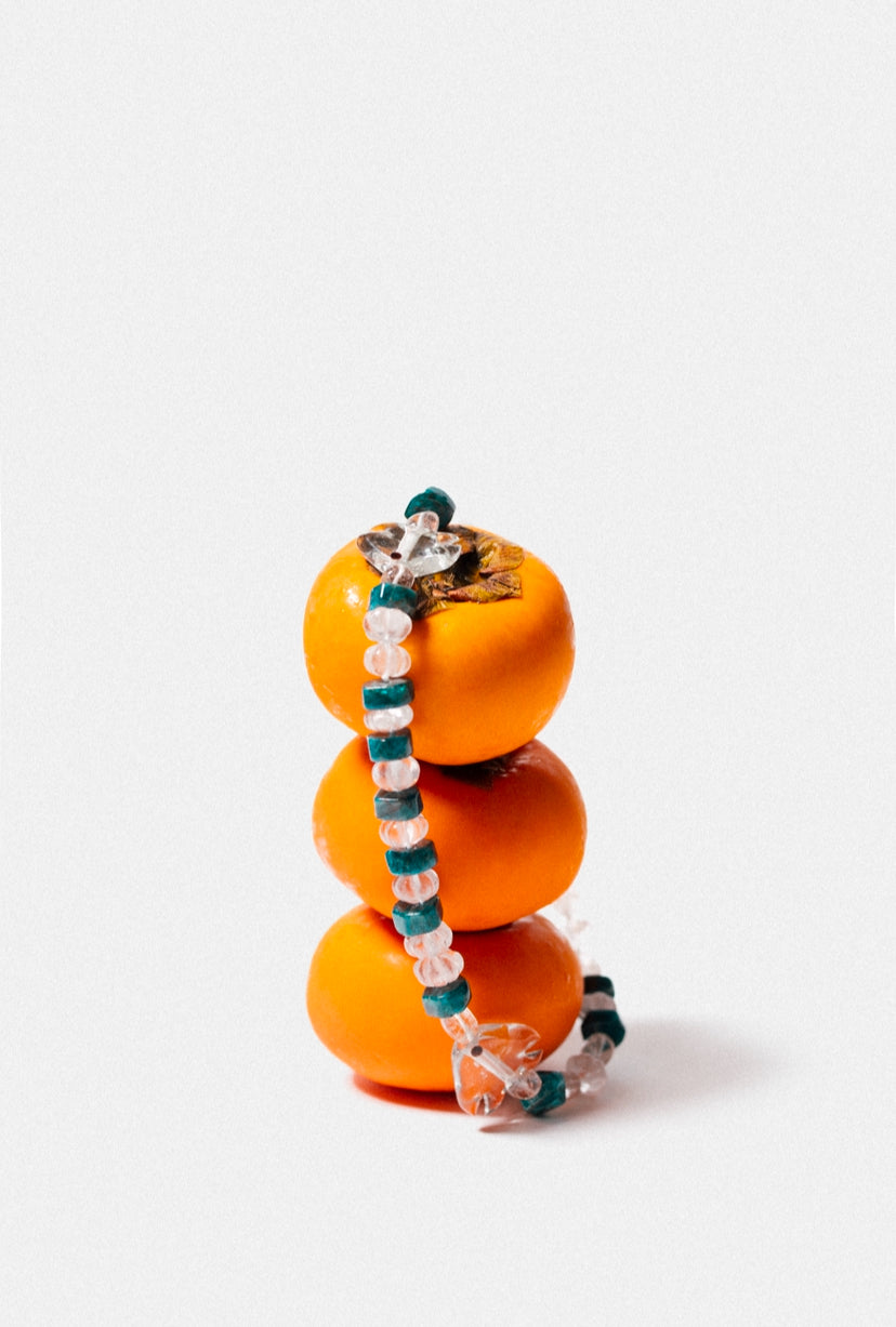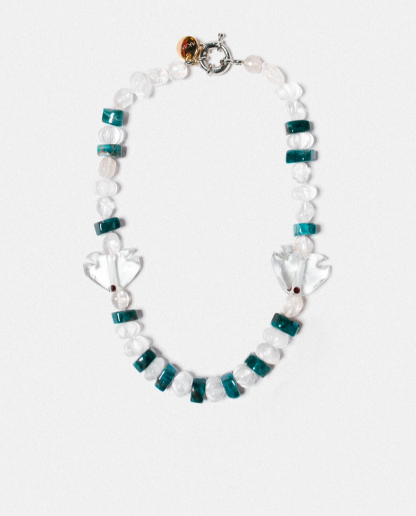 Fish in Murano glass + Natural Agate Stones + Natural Quartz Crystal Stones + Natural Apatites Stones + Stainless Steel Clasp with 18k Gold Plating