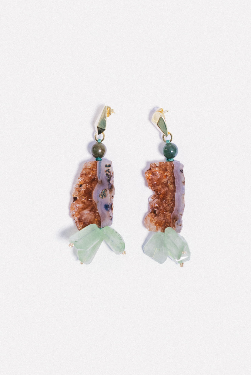 As pedras de quartzo natural, de corte orgânico, em harmonia com as pedras de prehnita natural, conferem originalidade e exalam uma sofisticação exótica, exclusiva da Akana. Todos os pormenores são cuidadosamente elaborados para compor a narrativa da Constelação Selvagem. Cada peça representa um fragmento desta aventura mágica, incorporando a emoção, o desejo e a beleza que se encontram na natureza. Os detalhes em metal banhado a ouro, como fechos e etiquetas, fazem parte da nossa linha de joias premium. São garantidos por um banho de ouro de 18 quilates de sete camadas.