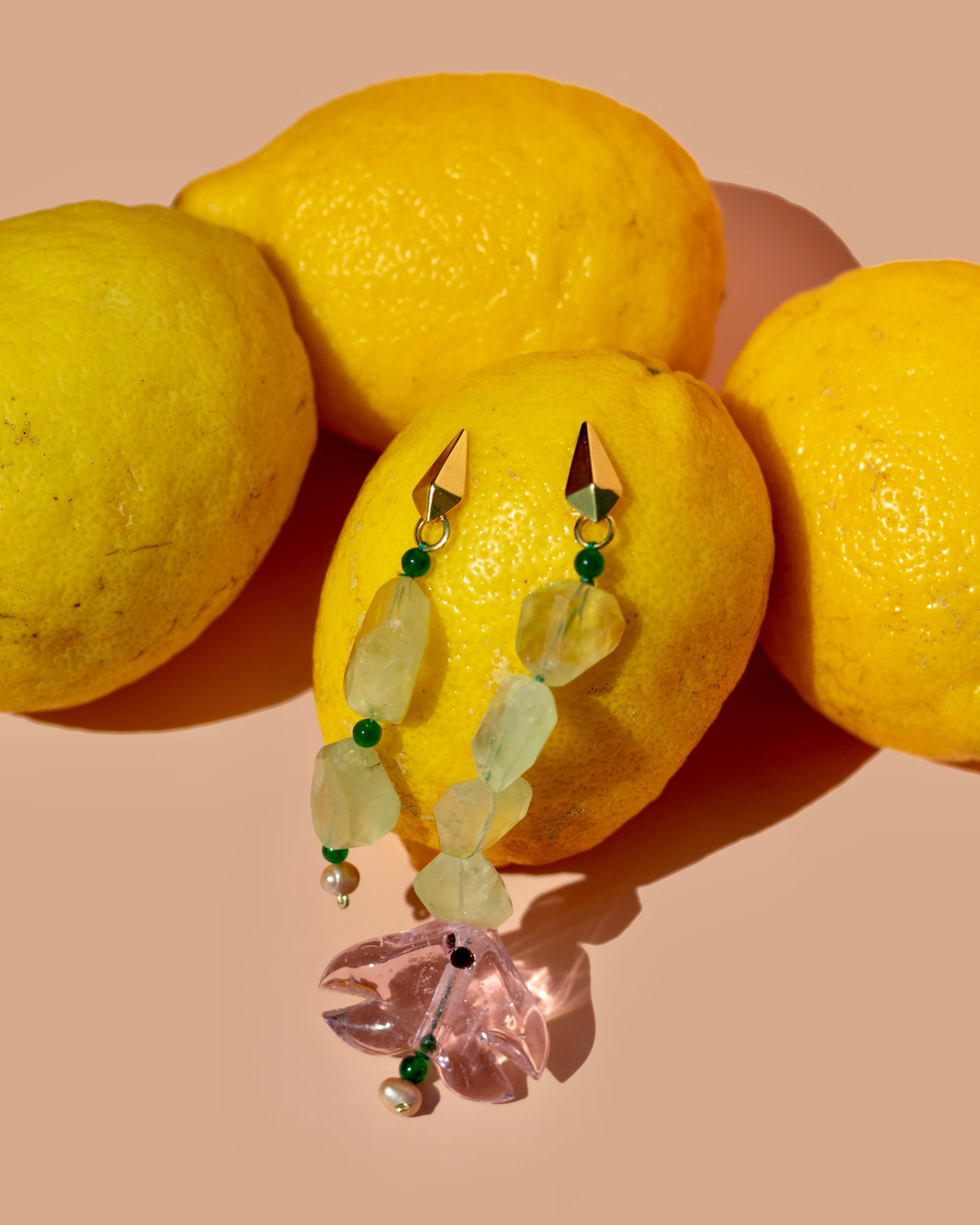 Murano Glass+Natural Amatiste Stone+ Natural Prehinite Stone+ Natural Jade Stones+ Stainless Steel Ring + 18k Gold Plating