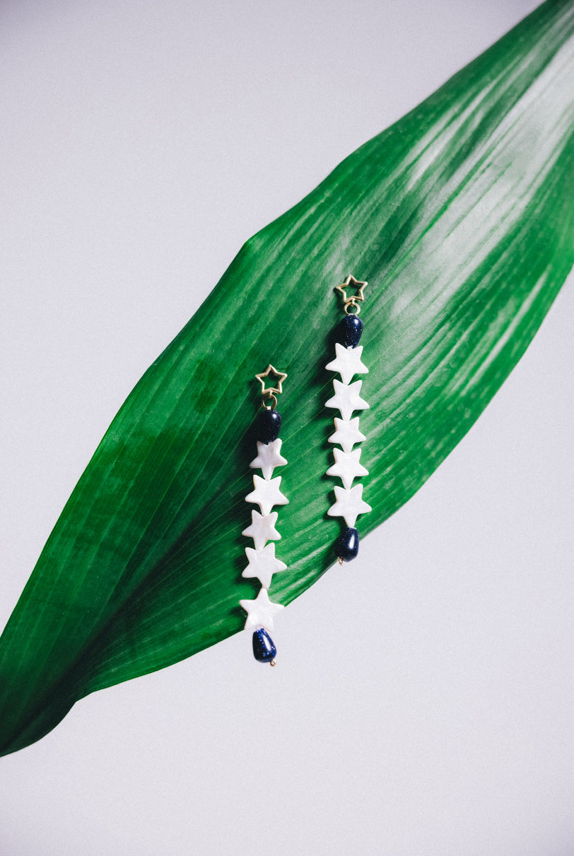 Bases de brincos em prata 925 banhada a ouro 18k + Estrelas em madrepérola + Pedras Estrela Azuis Naturais