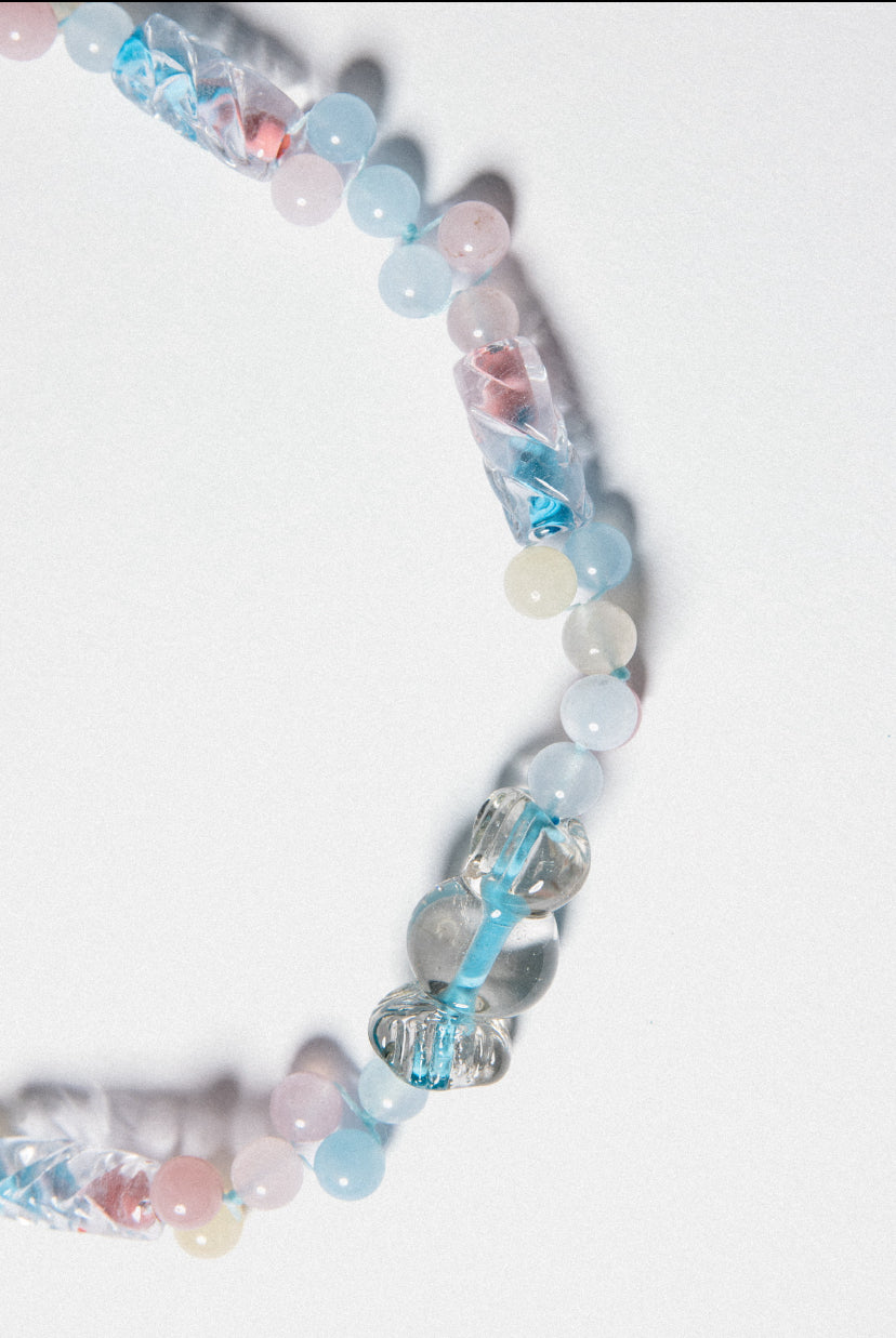 Murano glass / Natural Agate Stones / Stainless steel clasp with 18k gold plating
