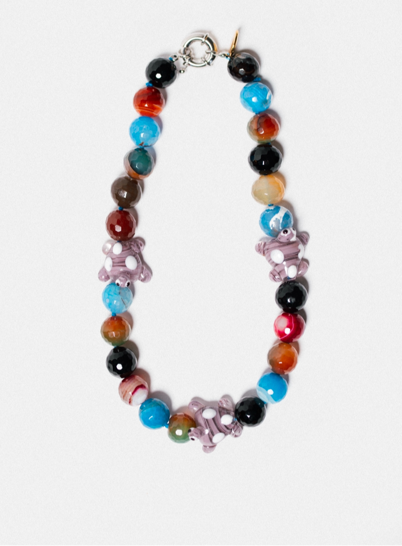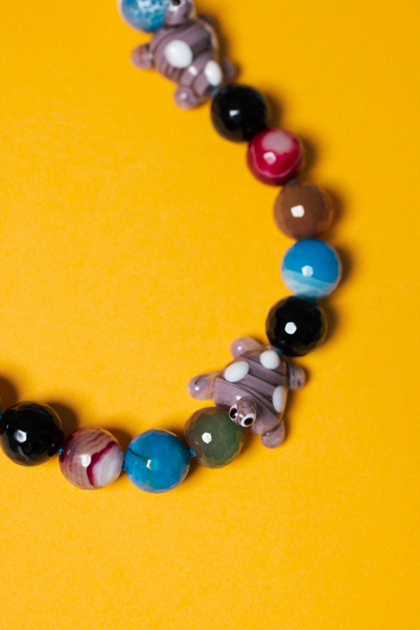Murano glass Turtle + Natural Agate 16mm Stone + Stainless Steel Clasp with 18k Gold Plating