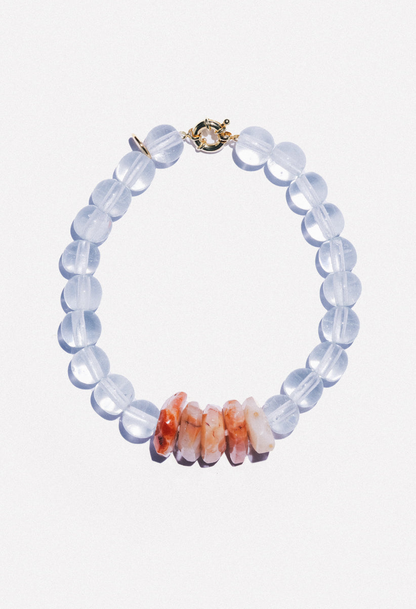 Pedras naturais do Botswana + vidro de Murano + fecho em aço inoxidável banhado a ouro 18k